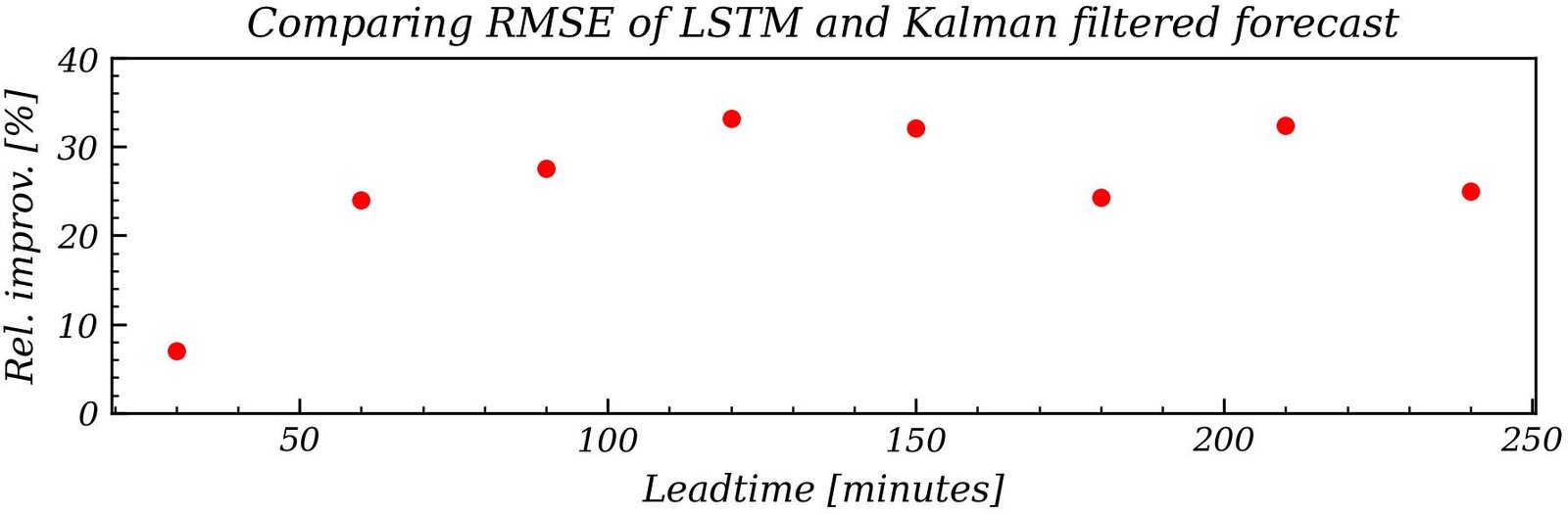 Figure 1: Relative RMSE improvement of LSTM compared to Kalman Filter for the different lead times